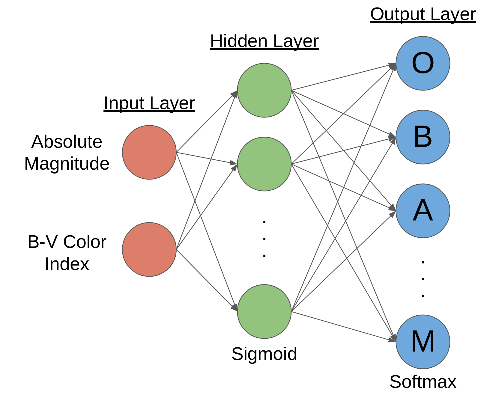 For a recent project, some colleagues and I had to use a scientific programming language called MATLAB to solve some problem. Our group consisted of Victoria Catlett (Physics and Math), Amanda Ehnis (Physics), and myself, Evan Meade (Physics and Math). Given our common interests in astrophysics and machine learning, we decided to create neural networks which could classify stars based on these features.